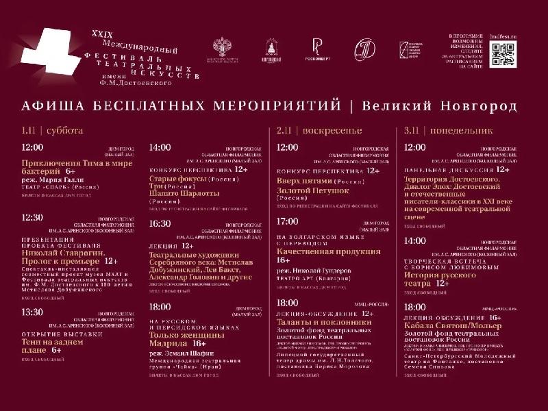 Афиша бесплатных мероприятий Великий Новгород