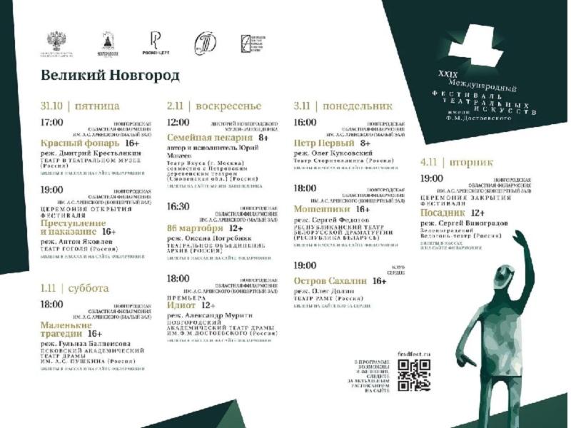 Программа мероприятий XXIX Международного фестиваля театральных искусств им. Ф.М. Достоевского