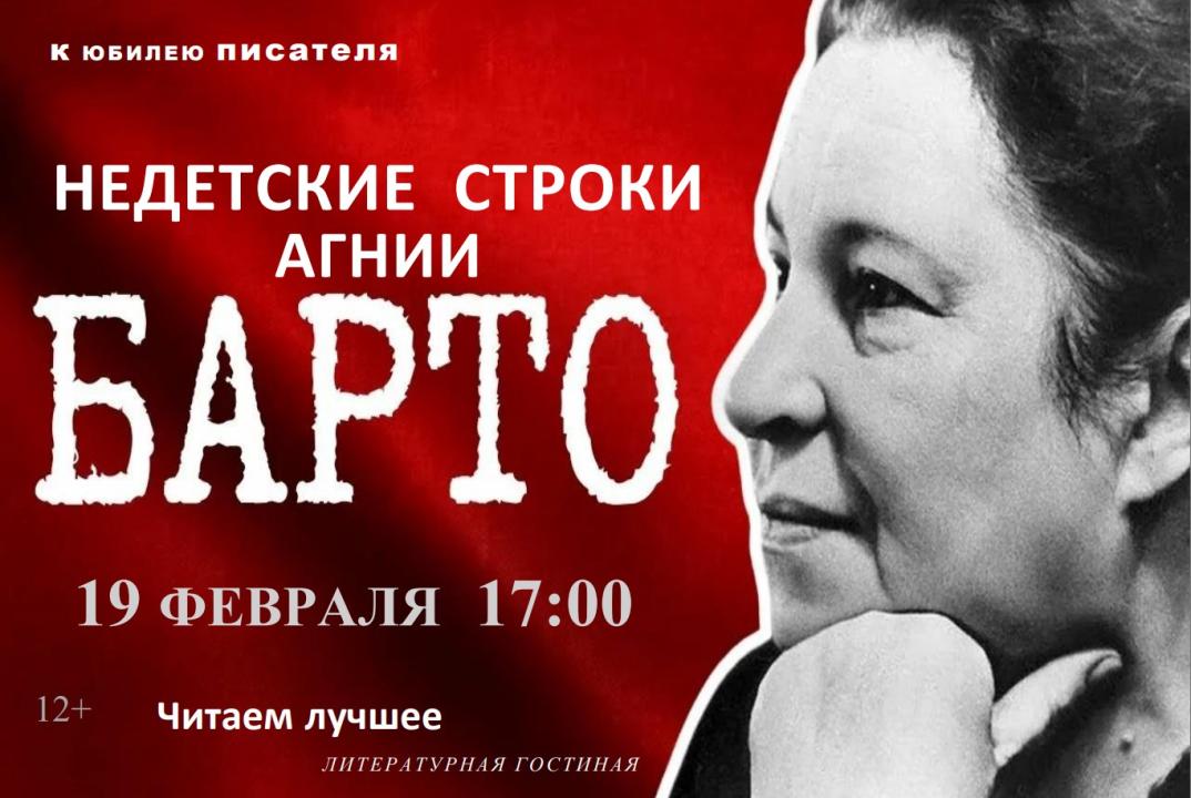 19 февраля 2026 года в 17:00 в центральной городской библиотеке им. Д. М. Балашова (ул. Т. Фрунзе-Оловянка, д. 7) состоится лекция литературной гостиной «Читаем лучшее». Тема встречи: «Недетские строки Агнии Барто».