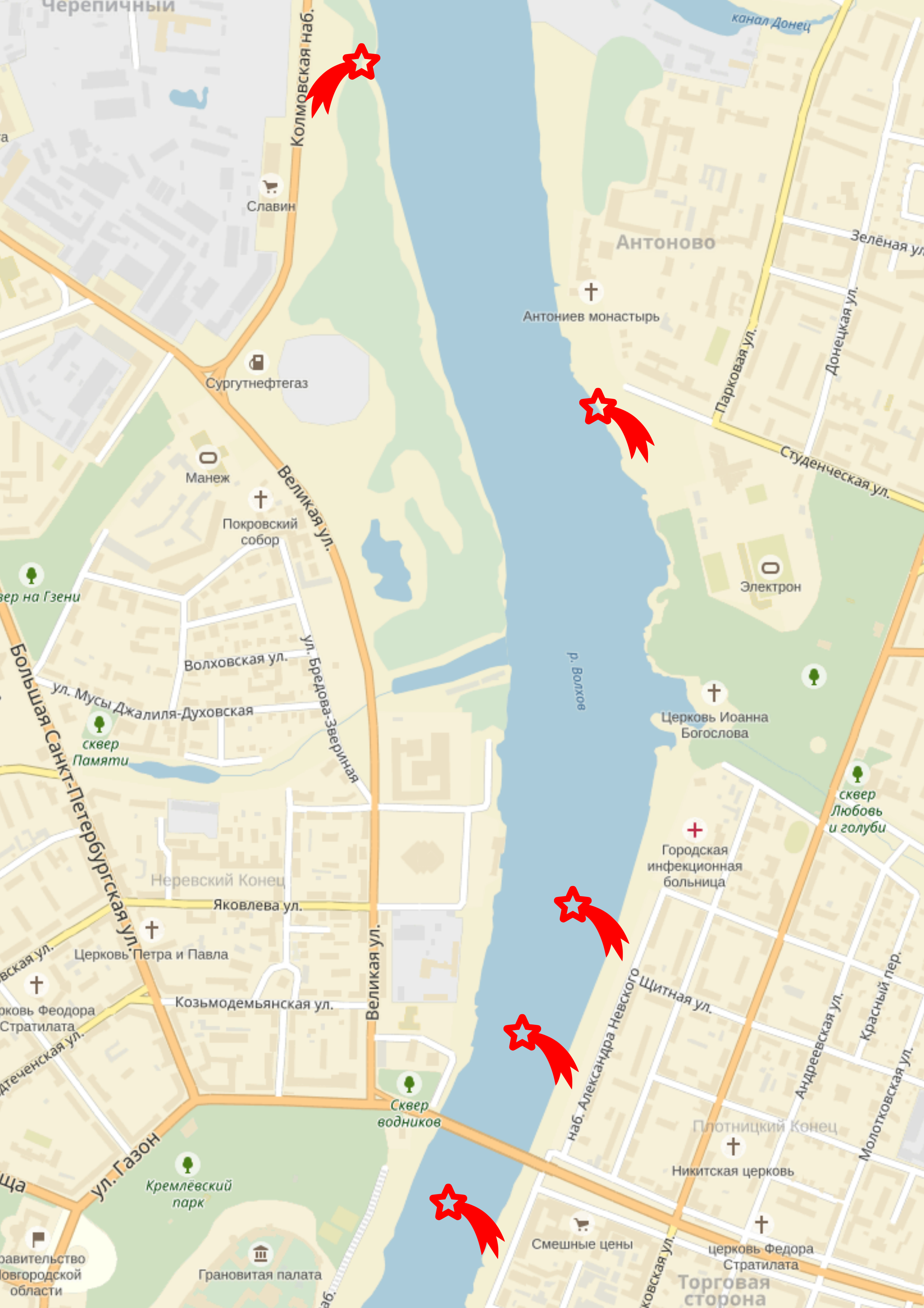 запуск фейерверков, салютов и прочей пиротехнической продукции следует проводить только в местах, соответствующих требованиям пожарной безопасности. Рекомендованные места в микрорайонах города указаны на карте: