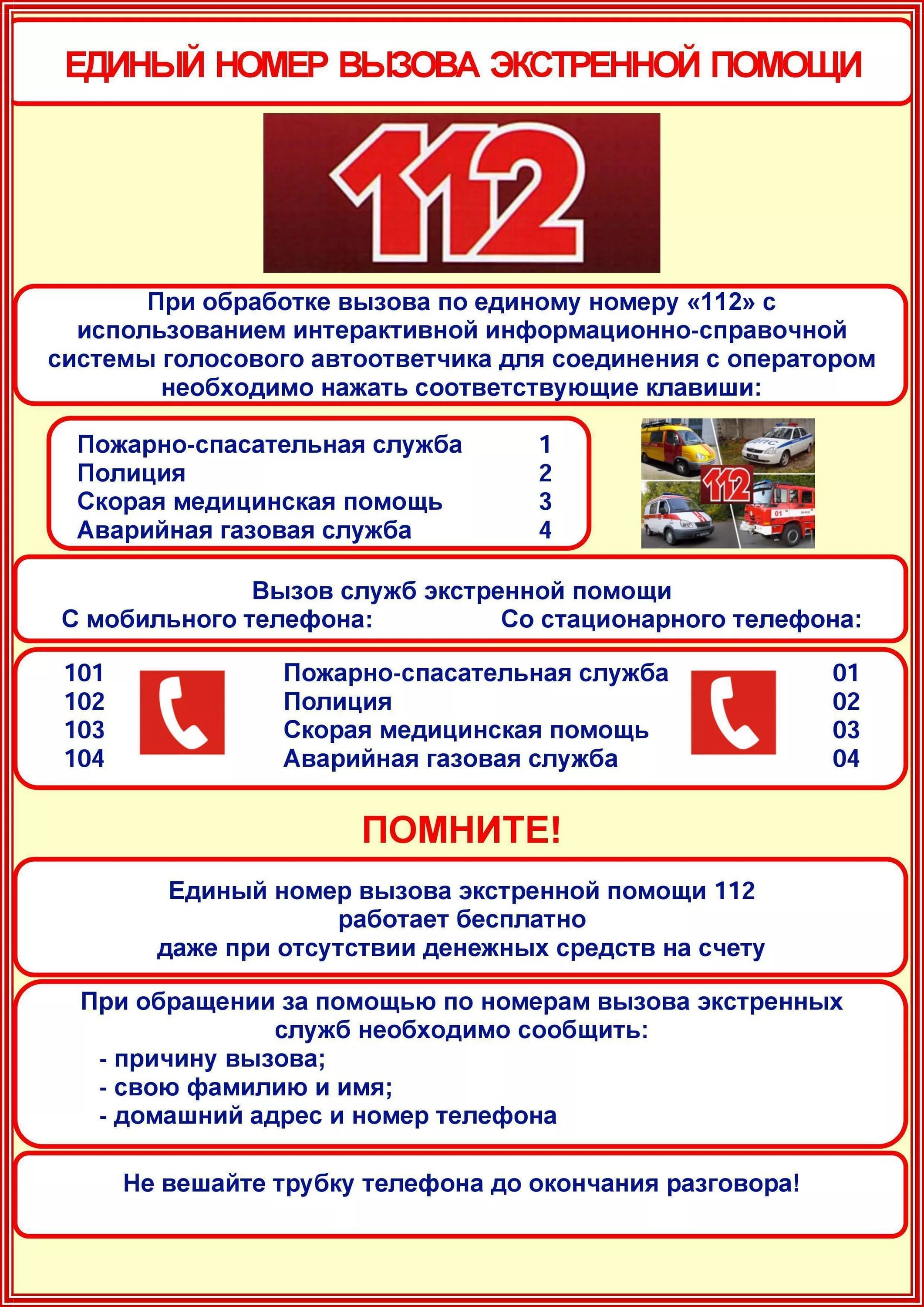 Памятка. Единый номер вызова экстренной помощи 112