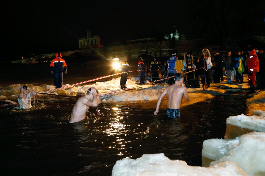 18 января с 22.00 ч. до 02.00 ч. 19 января 2018 г. во время проведения праздника Крещения Господня в Великом Новгороде проводится организованное массовое зимнее купание на берегу реки Волхов.