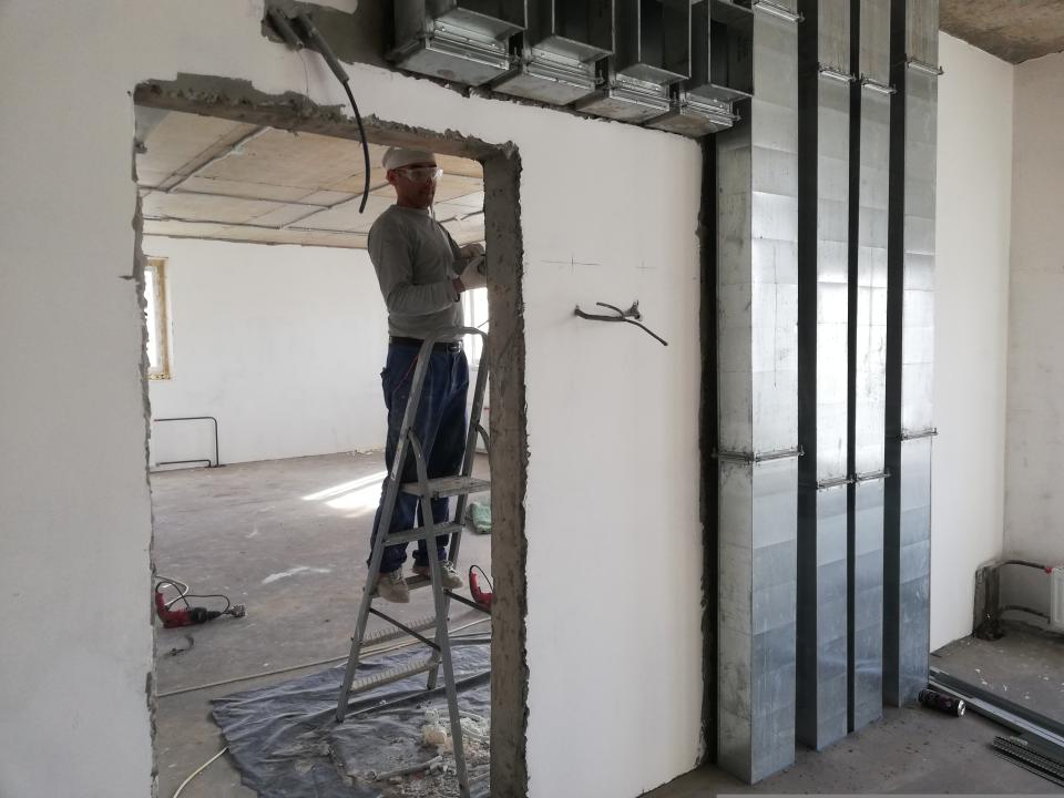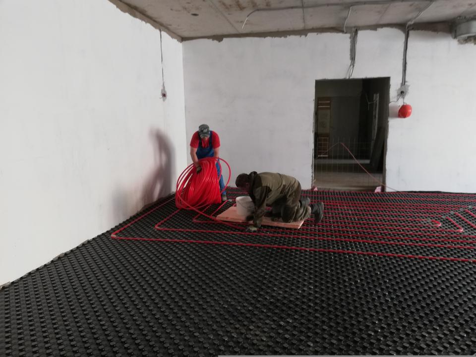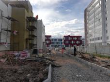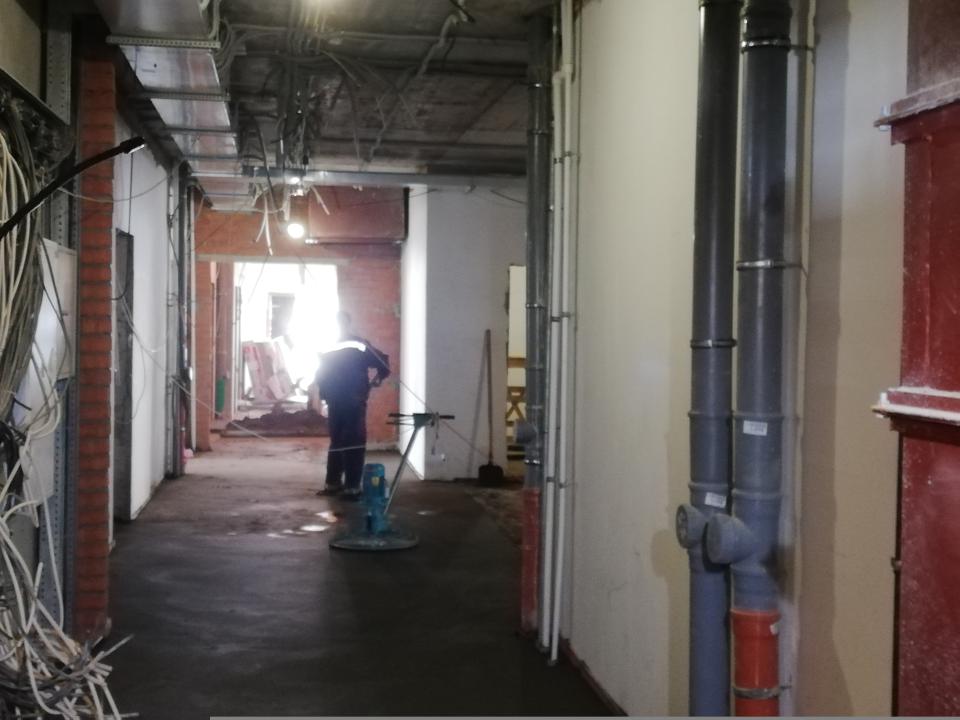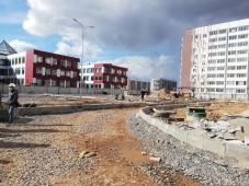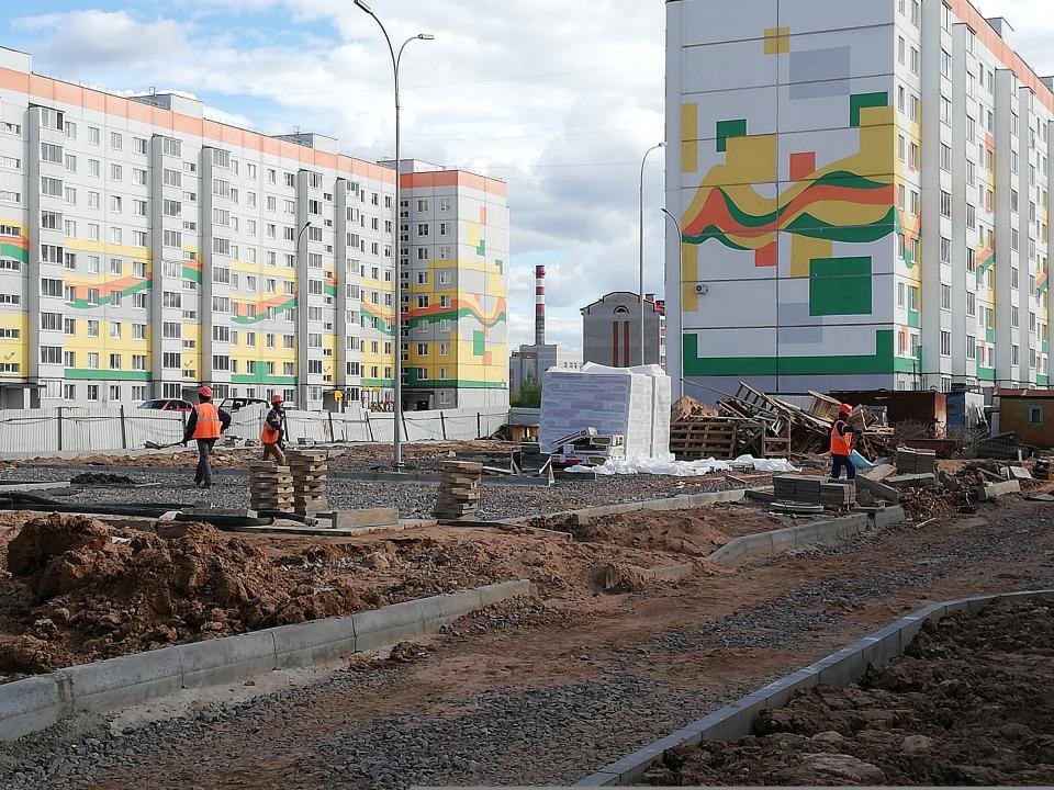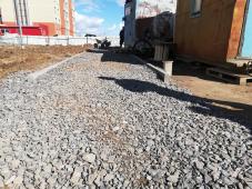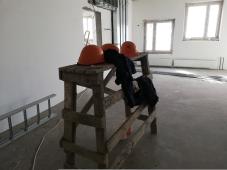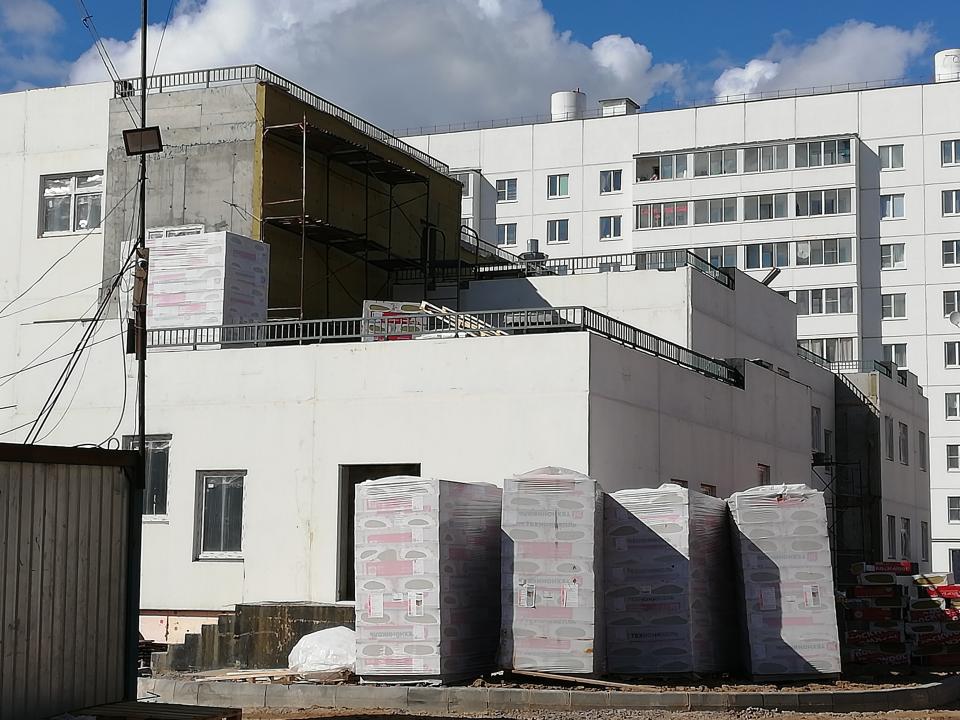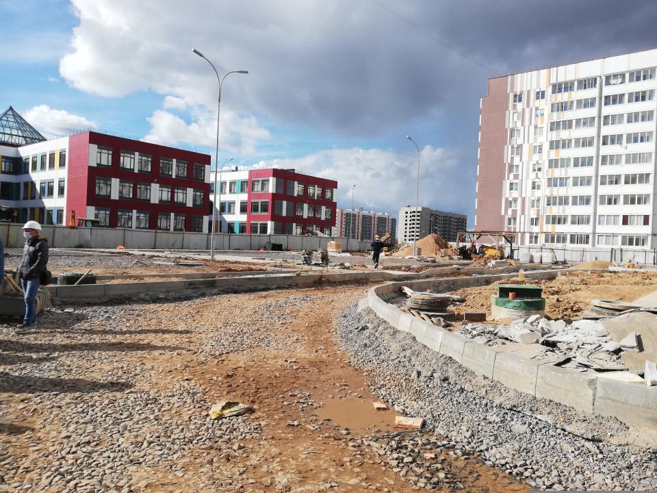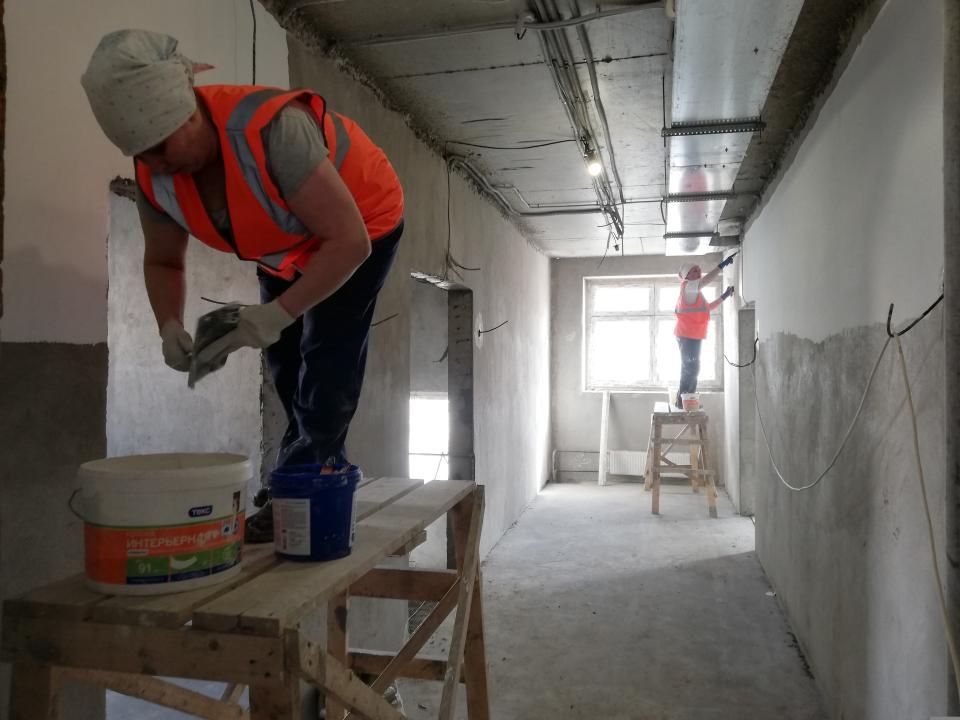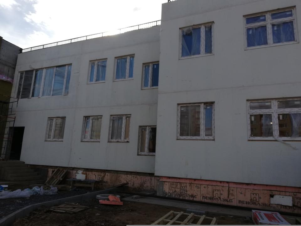 Ведутся работы по благоустройству территории. Строители устанавливают бортовой камень на площадках и проездах, идет монтаж столбов постоянного ограждения. Выполняется наружная отделка. Завершена внутренняя штукатурка стен и колонн. Ведутся шпаклевка стен на 1 и 3 этажах, устройство полов на 1 и 2 этажах (устройство стяжки по уложенному утеплителю). Продолжается монтаж внутренних сетей электроснабжения. Всё это журналисты смогли увидеть сегодня на строительной площадке.