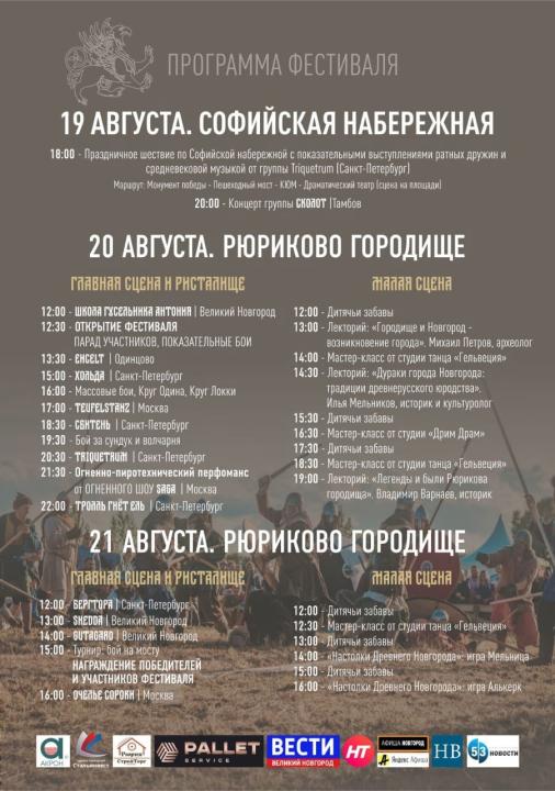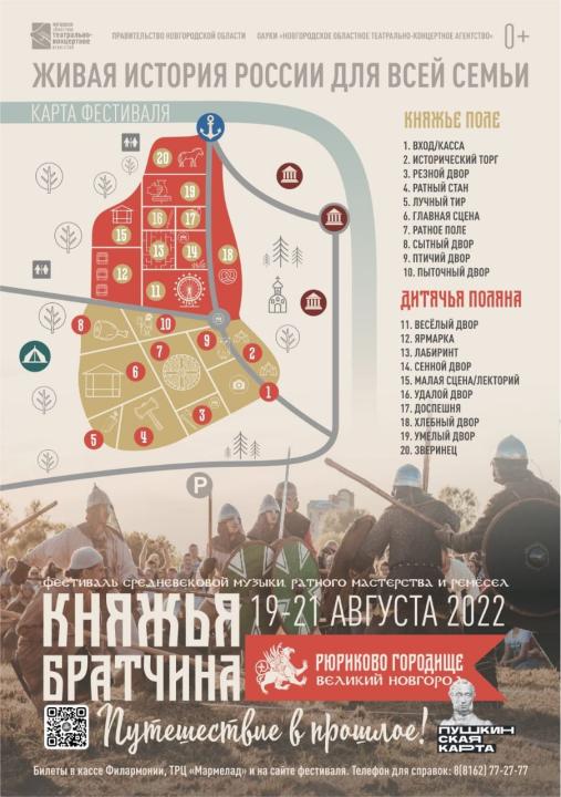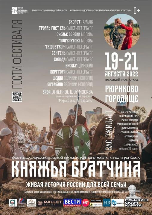 С 19 по 21 августа 2022г в Великом Новгороде на Рюриковом городище и на Софийской набережной пройдёт фестиваль средневековой музыки, ратного мастерства и ремёсел «Княжья Братчина». Настоящее путешествие во времена легендарного средневековья!