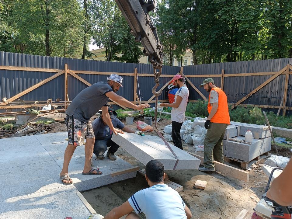 Компания из Санкт-Петербурга АО «Производственное объединение «Возрождение» с 14 июля выполняет ремонт мемориального комплекса «Вечный огонь славы» - братской могилы воинов, павших в боях Гражданской и Великой Отечественной войн, в которой похоронены в том числе, участники освобождения Новгородской земли от фашистов Герои Советского Союза Литвинов Владимир Григорьевич, Телегин Григорий Георгиевич и Харченко Федор Алексеевич. Мемориал 1965 года входит в состав объекта федерального значения «Ансамбль Новгородского Кремля, XI-XX века».