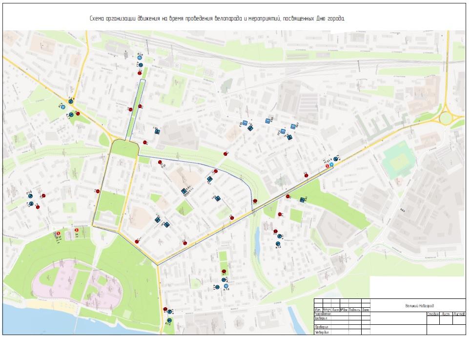26 августа 2023 года с 12.00 до 14.30 в связи с проведением Новгородского велопарада в рамках мероприятий, посвященных Дню города, планируется ограничить движение транспортных средств и пешеходов в соответствии с прилагаемой временной схемой организации дорожного движения, см. ниже.