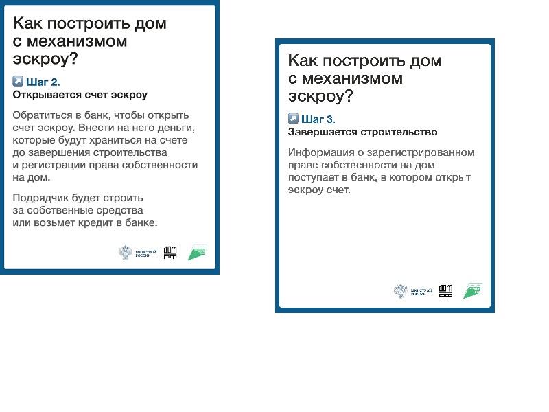 Для ознакомления с особенностями реализации норм Федерального закона от 22 июля 2024 г. № 186-ФЗ «О строительстве жилых домов по договорам строительного подряда с использованием счетов эскроу» мероприятий. Минстроем России совместно с ПАО ДОМ.РФ в рамках мероприятий разработаны информационно-графические материалы (см. в приложении).