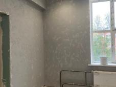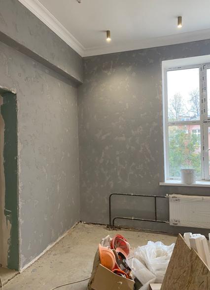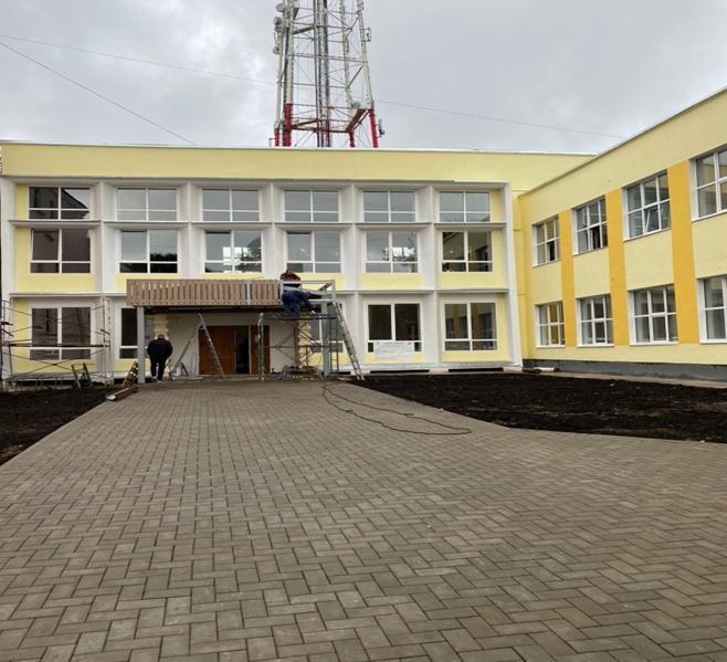 Строительная готовность объекта составляет 66%. Уже отремонтировали фасад (штукатурные работы, покраска), пожарную лестницу, кровельное покрытие, залили отмостку у здания. Отремонтировали учебные кабинеты, заменили окна, уложили плитку во внутренних помещениях, выполнили строительные работы по демонтажу оборудования и инженерных коммуникаций, произведен их ремонт или замена, благоустроили территорию, прилегающую к входной группе.