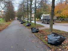 Мешки с собранной листвой и случайным мусором в течение недели работники "Городского хозяйства" погрузят и вывезут на полигон ТКО Экосити в Новгородском районе, 17 км Лужского шоссе.