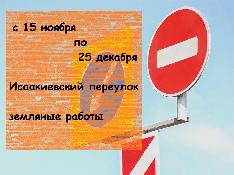 Вниманию автолюбителей: с 15 ноября перекроют движение по Исаакиевскому переулку