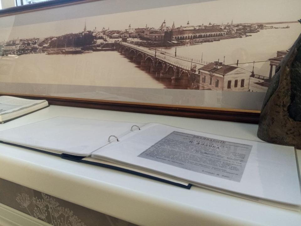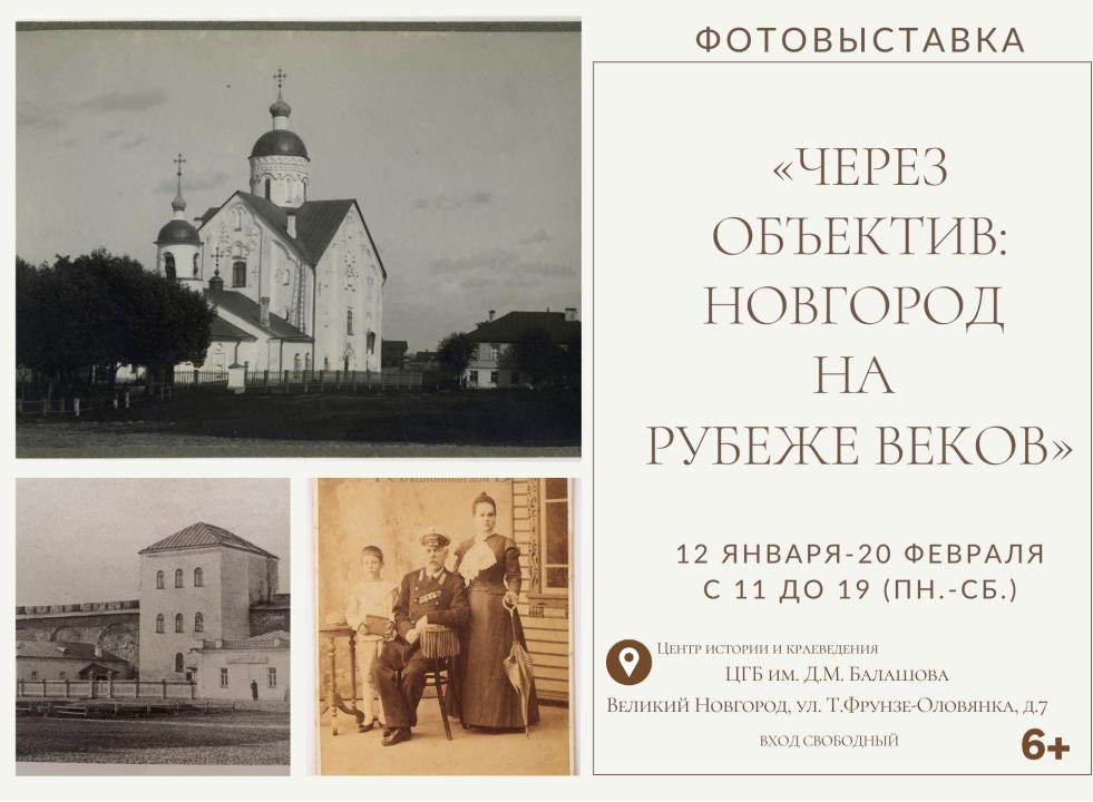 Новгородцы и гости города смогут заглянуть в прошлое, запечатленное глазами новгородских фотографов конца XIX – начала XX столетий. Действующий член новгородского общества любителей древности, один из соавторов фотовыставки Ю.А. Маркитанов предоставил около 40 копий фотографий с видами Новгорода 1870-1880 годов. Фотоальбом он обнаружил в кабинете редких книг и рукописей библиотеки Государственного Эрмитажа (Санкт-Петербург). Судя по надписи альбом императрице Марии Фёдоровне преподнёс в дар новгородский градоначальник Яков Иванович Журавлёв.